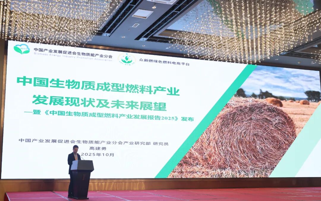 中国产业发展促进会生物质能产业分会燃料部主任陈久介绍“众新燃”燃料平台会上,中国产业发展促进会生物质能产业分会产业研究部研究员高建勇在会上发布了《中国生物质成型燃料产业发展报告2025》,并 以“中国生物质成型燃料产业发展现状及未来展望”为主题,做了主旨演讲。报告预测,到2030年,我国生物质成型燃料需求将达到5000万吨,产值超400亿元,可带动上下游就业超30万人。至2050年,产业需求有望进一步扩大至3亿吨。中国产业发展促进会生物质能产业分会产业研究部研究员高建勇发布《中国生物质成型燃料产业发展报告2025》发布会现场, 中国产业发展促进会副会长、国家能源局新能源和可再生能源司原副司长史立山,中国能源研究会特邀副理事长、国家能源局原总经济师郭智,中国产业发展促进会副秘书长兼生物质能产业分会秘书长张大勇,湖北省新能源发展促进会会长甄建桥,湖北省乡村发展协会会长刘晓洪,武汉光谷蓝焰新能源股份有限公司董事长熊建及相关行业专家,共同按下平台启动掌印,见证了“众新燃”绿色燃料电商平台正式上线的历史时刻。 05 未来展望:打造国内领先、国际一流的绿色燃料电商平台作为行业基础服务设施,“众新燃”平台上线只是产业高质量发展的起点,未来在中国产业发展促进会生物质能产业分会的大力支持下,平台将丰富燃料品类,由当前的生物质成型燃料逐步扩展到生物天然气、生物液体燃料和氢基合成燃料等绿色燃料,以满足更多市场主体消费绿色能源。同时,持续深化与各方合作,为乡村振兴、工业脱碳、绿色交通、建筑业减碳提供坚实支撑,助力我国经济结构全面绿色转型。
